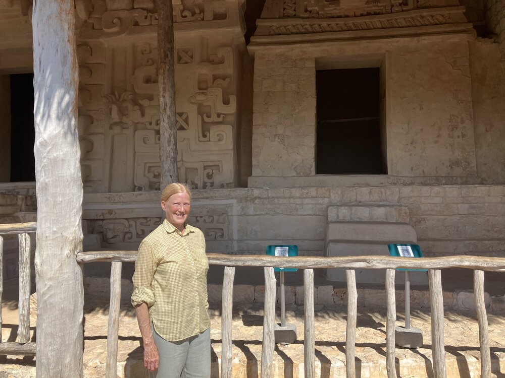106. Amy with the Mayan Hieroglyphs in the background