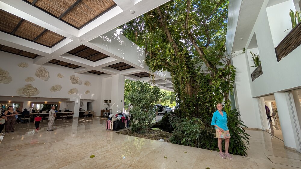 108. Amy at the lobby of the Playacar Palace in Playa de Carmen, Mexico