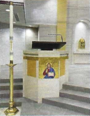 It is appropriate that generally this place be a stationary ambo and not simply a movable lectern. The ambo must be located in keeping with the design of each church in such a way that the ordained ministers and readers be clearly seen and heard by the faithful (GIRM, 309).