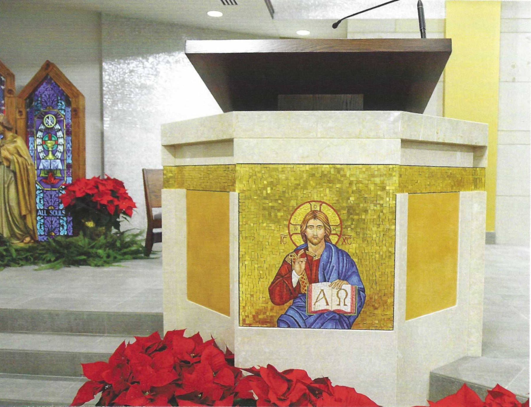 The planned mosaic image behind the tabernacle will take its inspiration from the name of our parish Lumen Christi—Light of Christ, and this passage from the Book of Revelation 21:23-24: