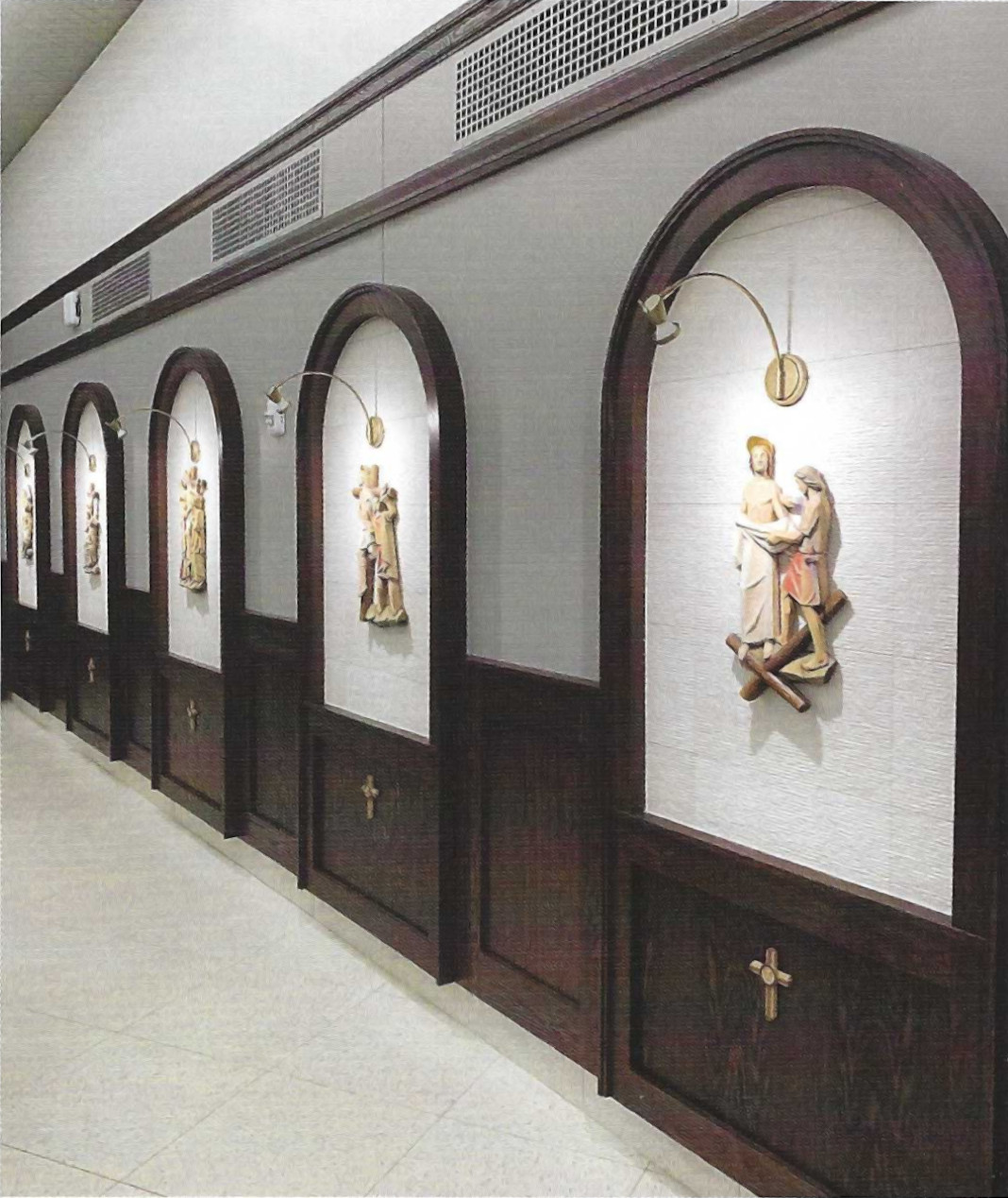 The beautifully hand-carved and distinctive Lumen Christi Stations of the Cross, previously located in St. James Church, are impressively displayed to encourage personal devotion to this powerful form of prayer all year long.