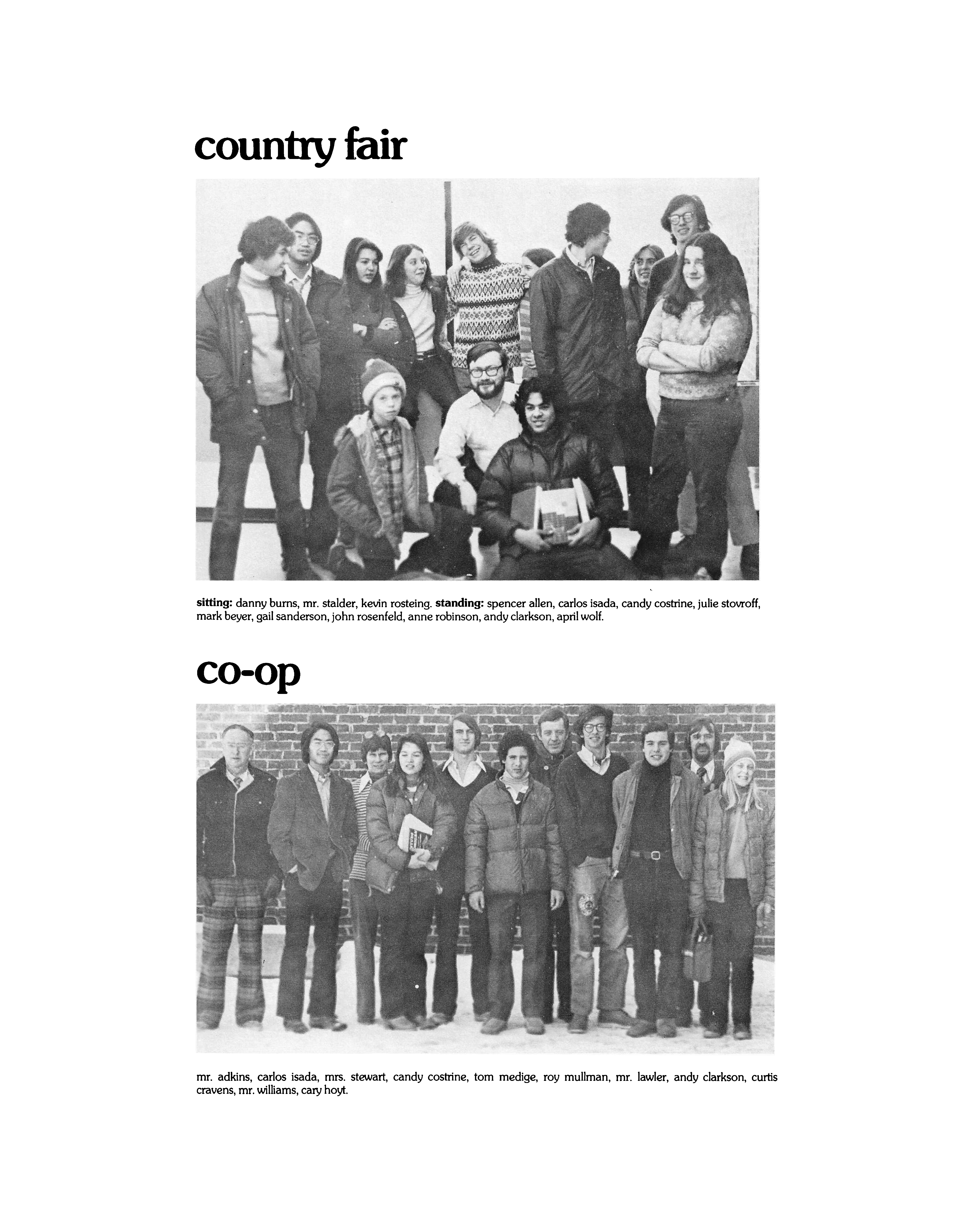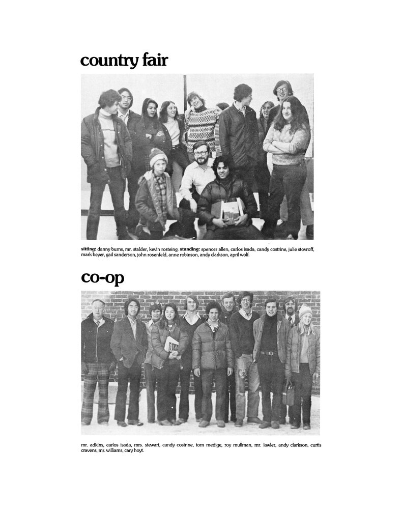 | 85. Country FairSitting: Danny Burns, Mr. Stalder, Kevin Rosteing. Standing: Spencer Allen, Carlos Isada, Candy Costrine, Julie Stovroff, Mark Beyer, Gail Sanderson, John Rosenfeld, Anne Robinson, Andy Clarkson, April Wolf. Co-OpMr. Adkins, Carlos Isada, Mrs. Stewart, Candy Costrine, Tom Medige, Roy Mullman, Mr. Lawler, Andy Clarkson, Curtis Cravens, Mr. Williams, Cary Hoyt. | ||