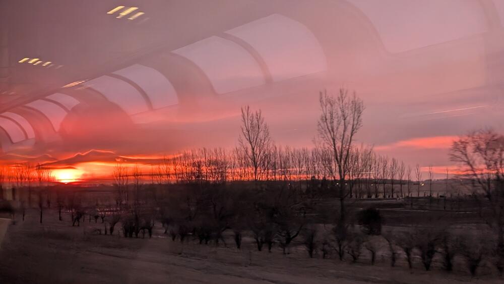 14. The sun peaking above the horizon