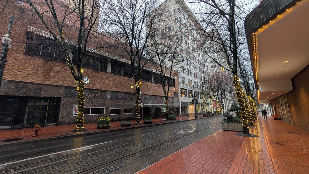 73. The street reflected the light in the rain