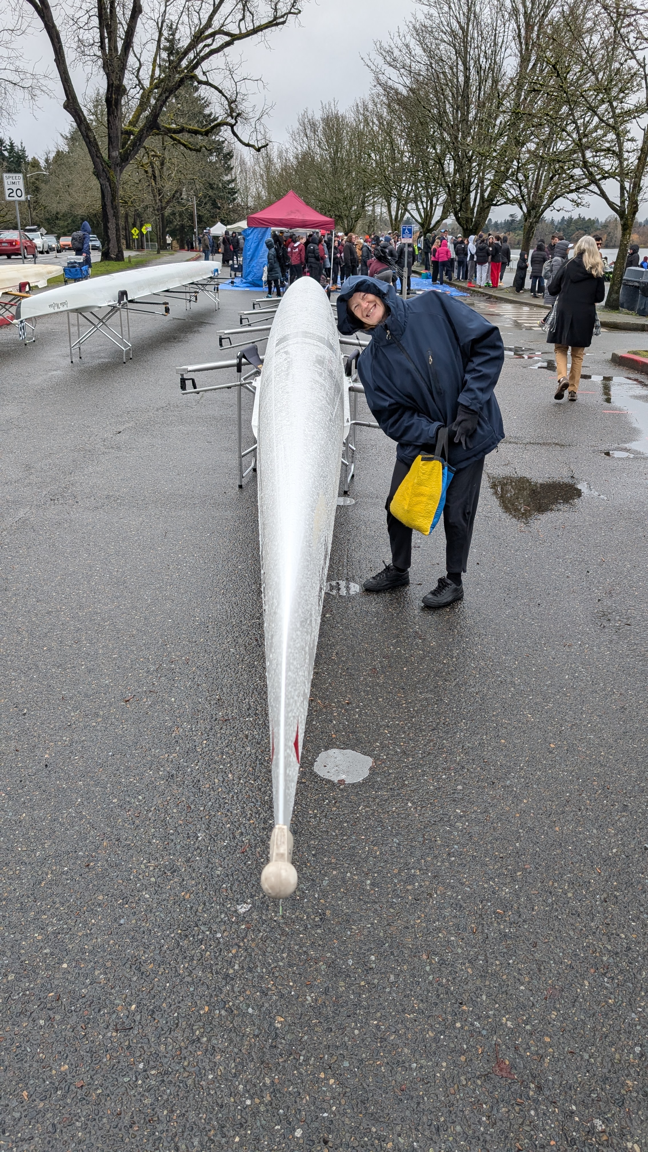 95. Amy at the regatta. This is the size of the 8-crew canoes.