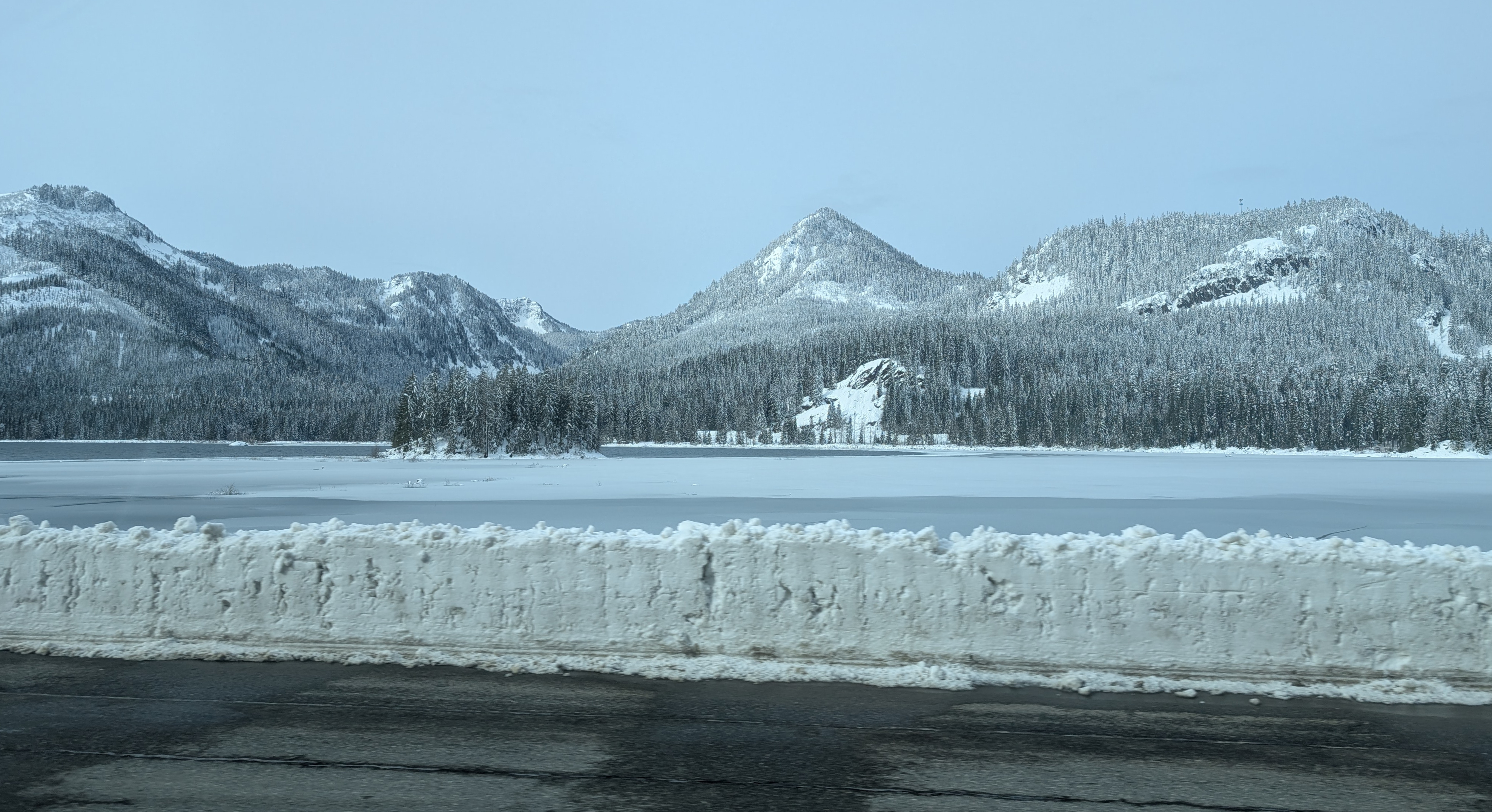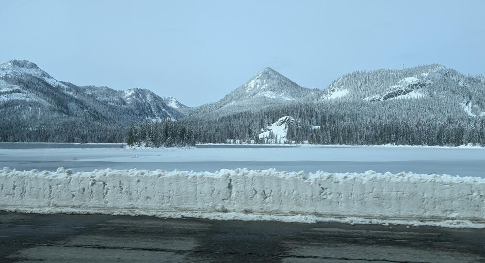 145. Again, deep snow in the foreground, a reservoir & mountains in the distance.