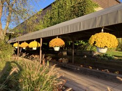 Photo 1: Thursday, 10/9/2025: We traveled to Lake Geneva, WI. This is a common sunflower (Helianthus annuus) in the landscape of the Grand Geneva Resort. |