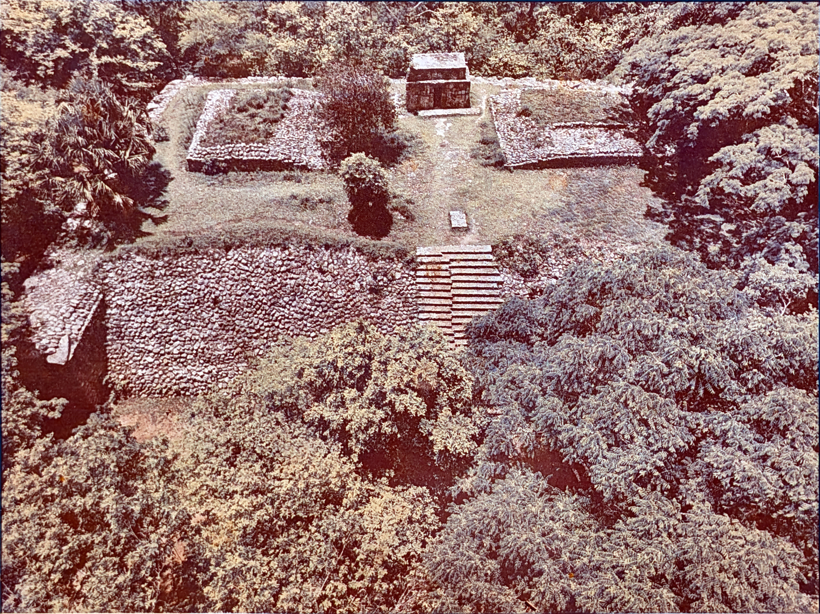 121. This is the same structure from an aerial view. You can see a temple on the top plateau.