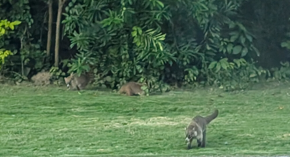168. After a long three-hour bus ride, we return to our hotel Nizuc. We spot about eight Coatis outside the gate.
