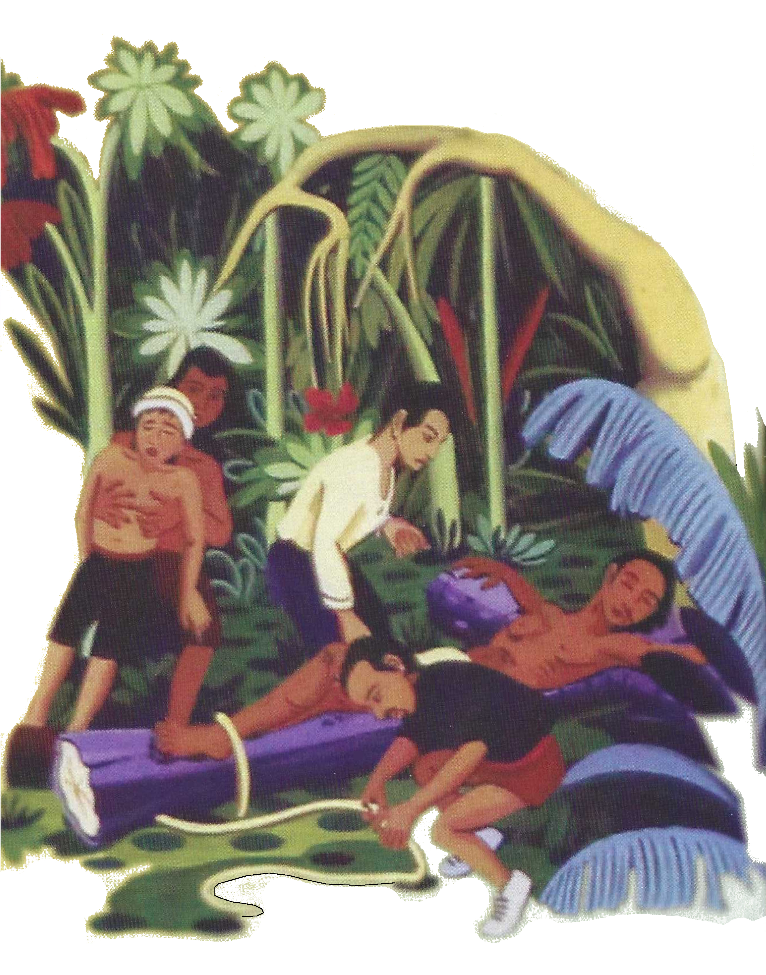 For Huillca’s generation of young people in the southern Andes, the Way of the Cross is their experience of hiring out to pan for gold in jungle areas of Peru. Lured by labor contractors with promises of instant cash, increasing numbers of young Quechua and Aymara people venture from the altiplano to the jungle. Huillca dramatically portrays the reality. Instead of striking it rich, the workers find unfulfilled promises and even death by disease or drowning.