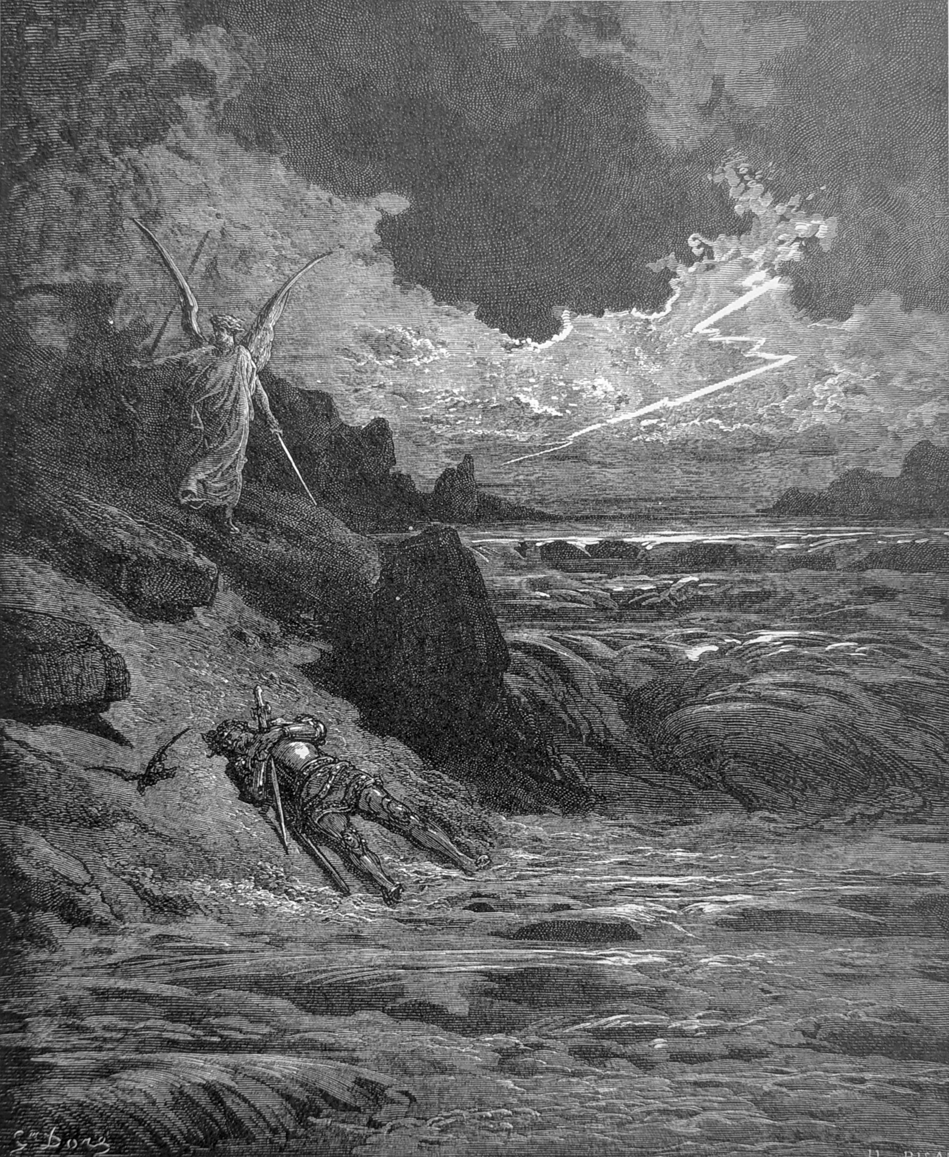 "God's Angel took me up, and he of hell / Shouted: ‘O thou from heaven, why dost thou rob me?" Purg. V, lines 104-105