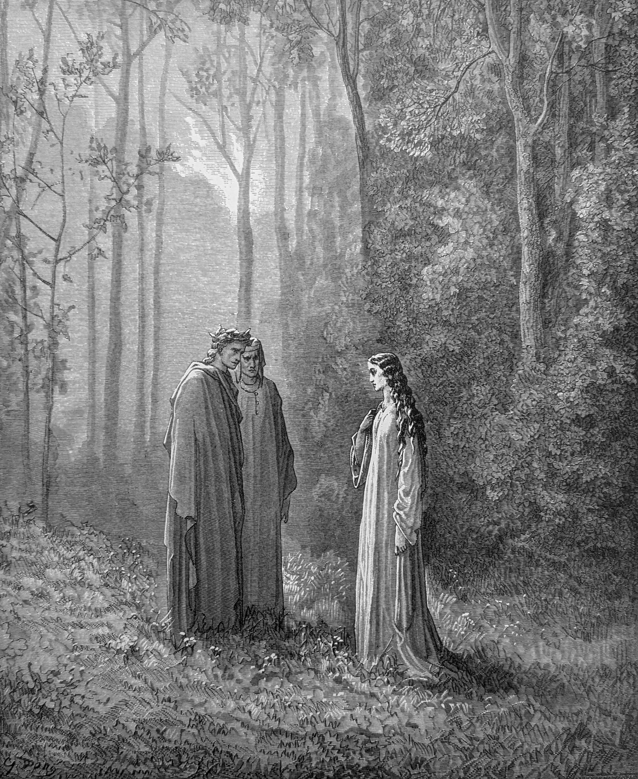 4. The speaker here identifies himself as Buonconte da Montefeltro, and like Jacopo before him, his request is couched in gracious language. And yet, there is a great sadness to his story because no one in his hometown, including his wife, Giovanna, seems to remember or care about him which causes him great embarrassment. Like others before him, though he doesn’t say so directly, he, too, wants prayers that will speed him on his way to penitence in Purgatory proper.