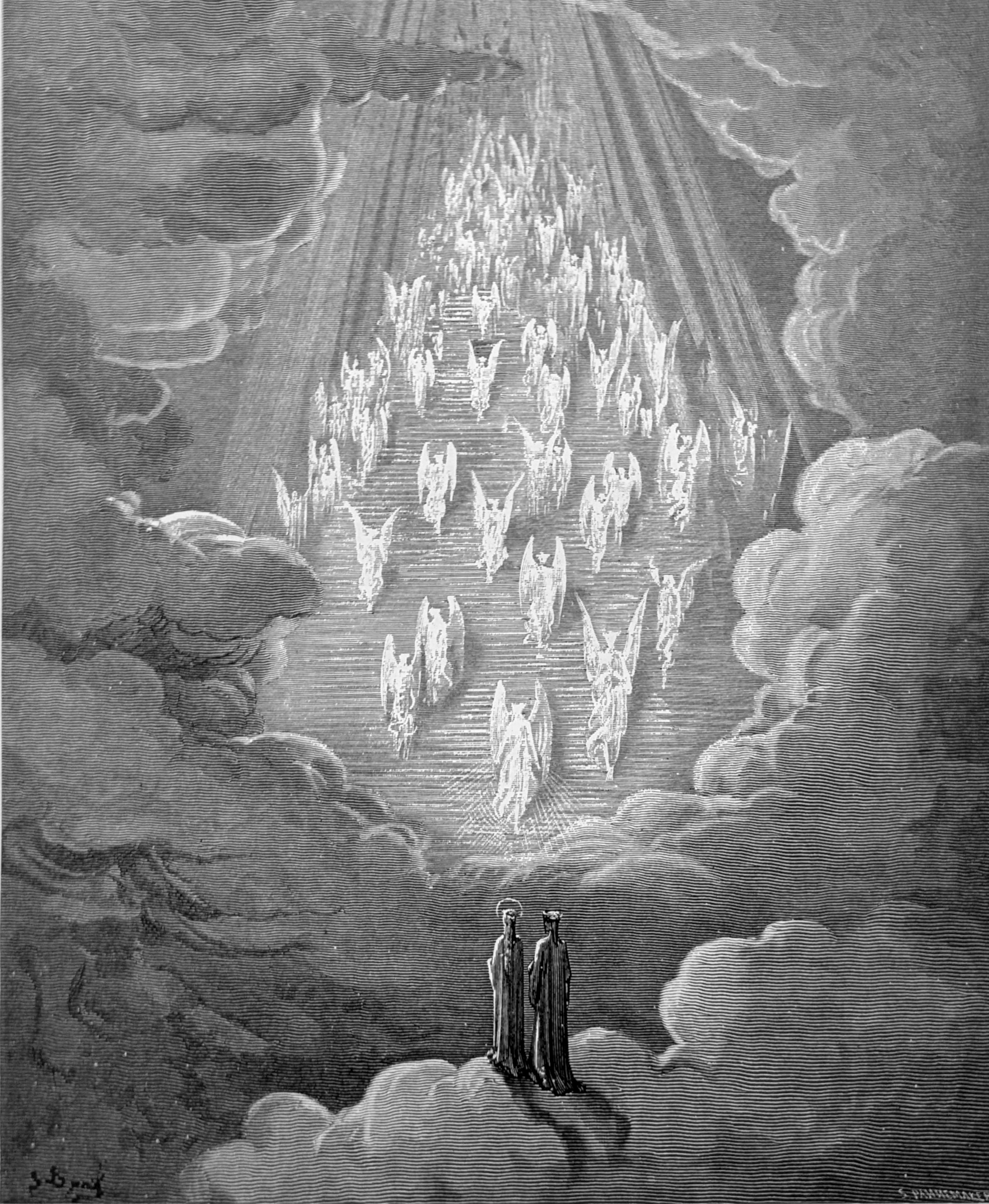 A stairway I beheld to such a height / Uplifted, that mine eye pursued it not. Par. XXI, lines 29-30