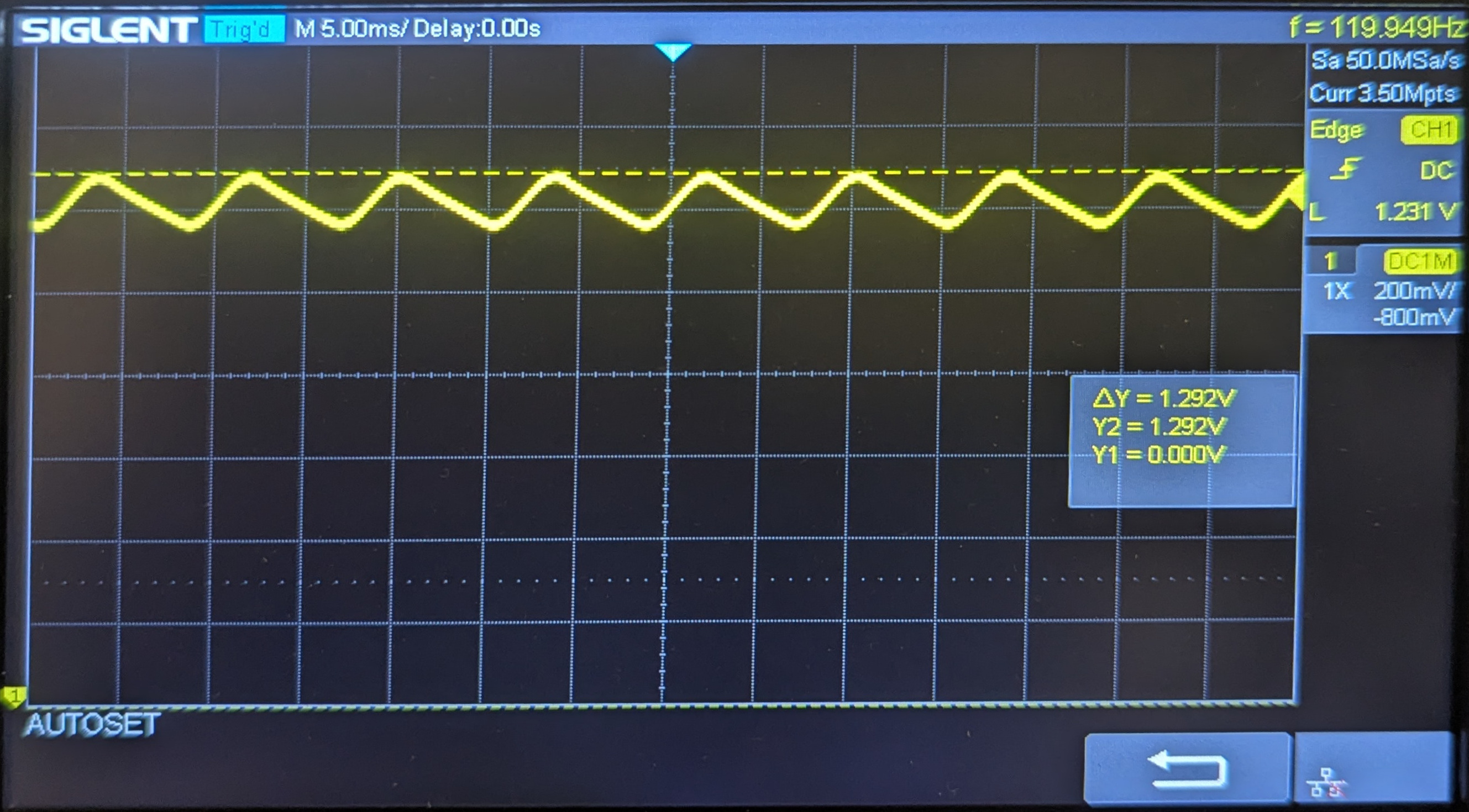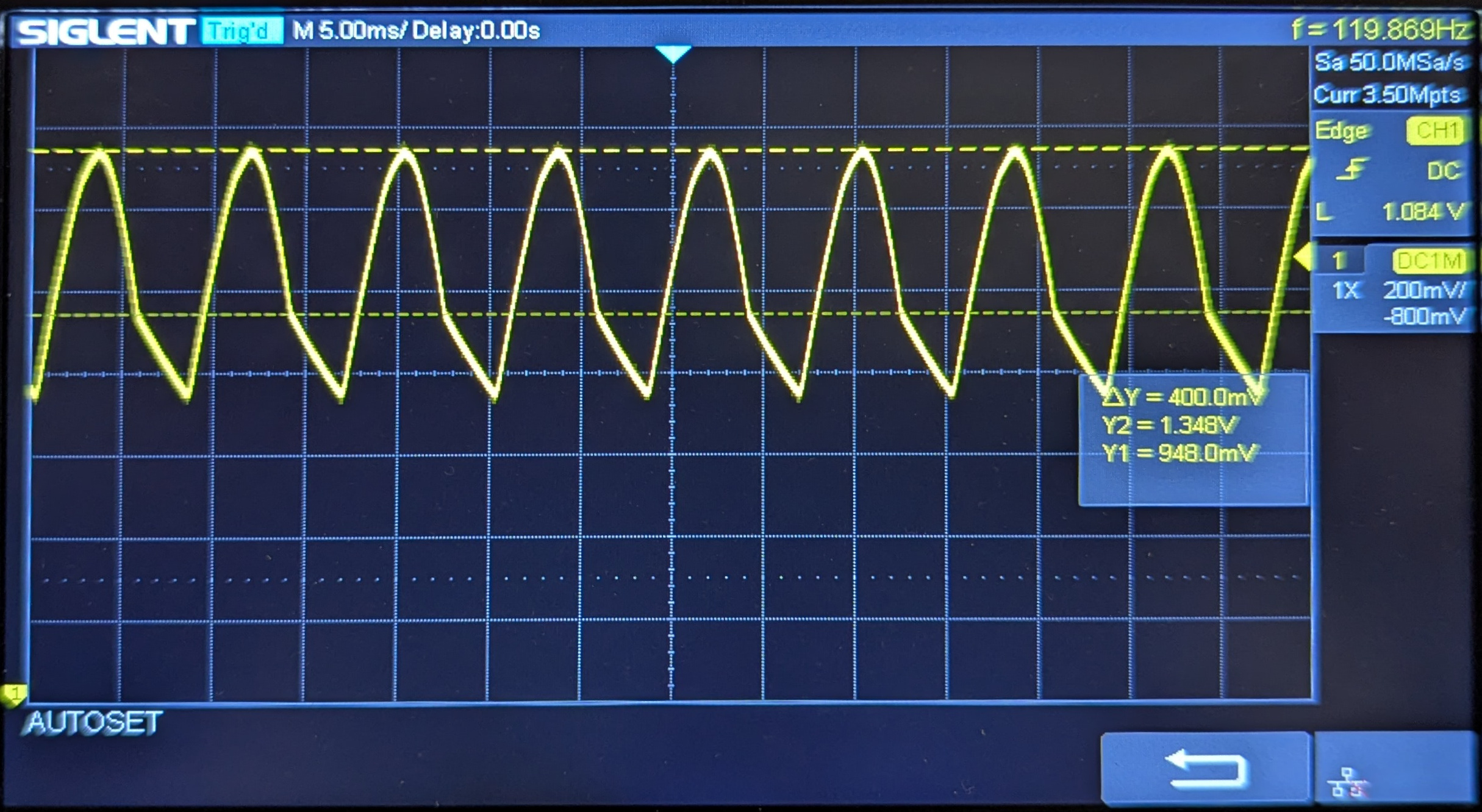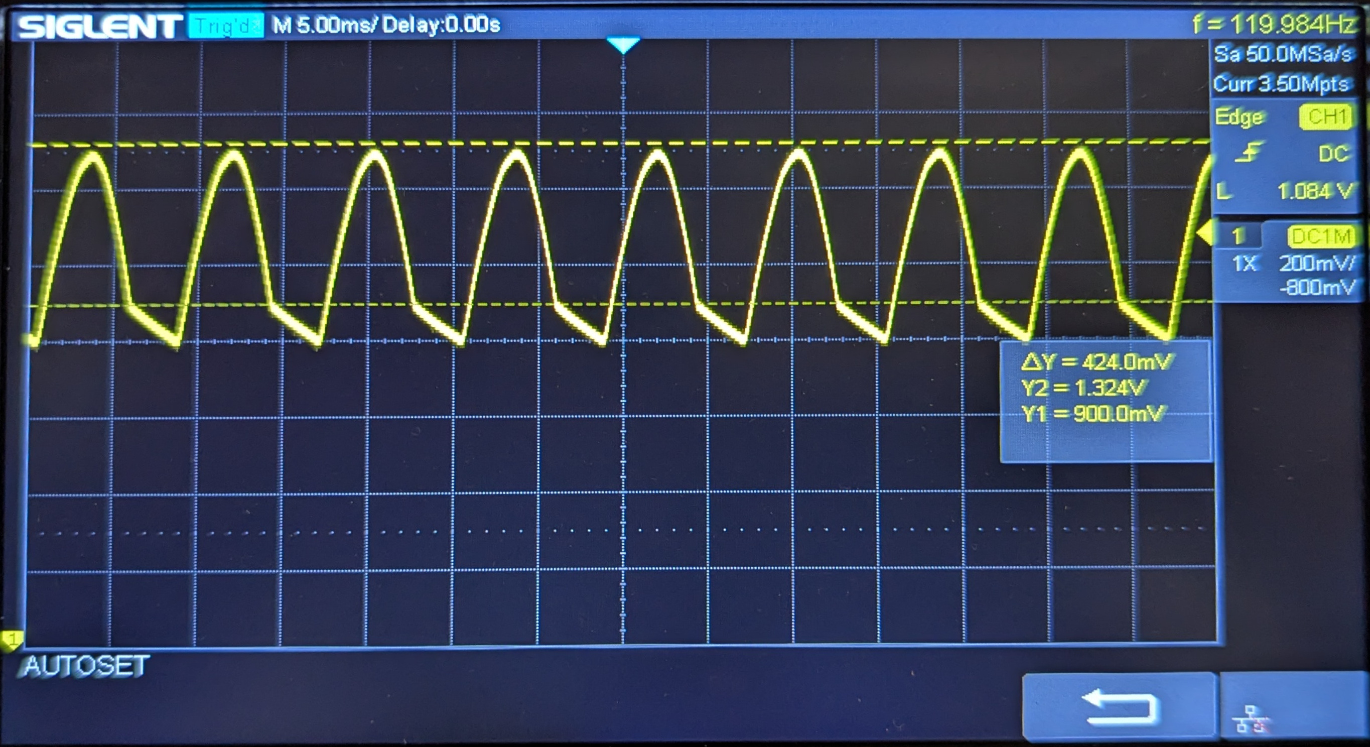 Note: The zero voltage is at the very bottom, meaning that the saw tooth pattern is 'floating' near the top.