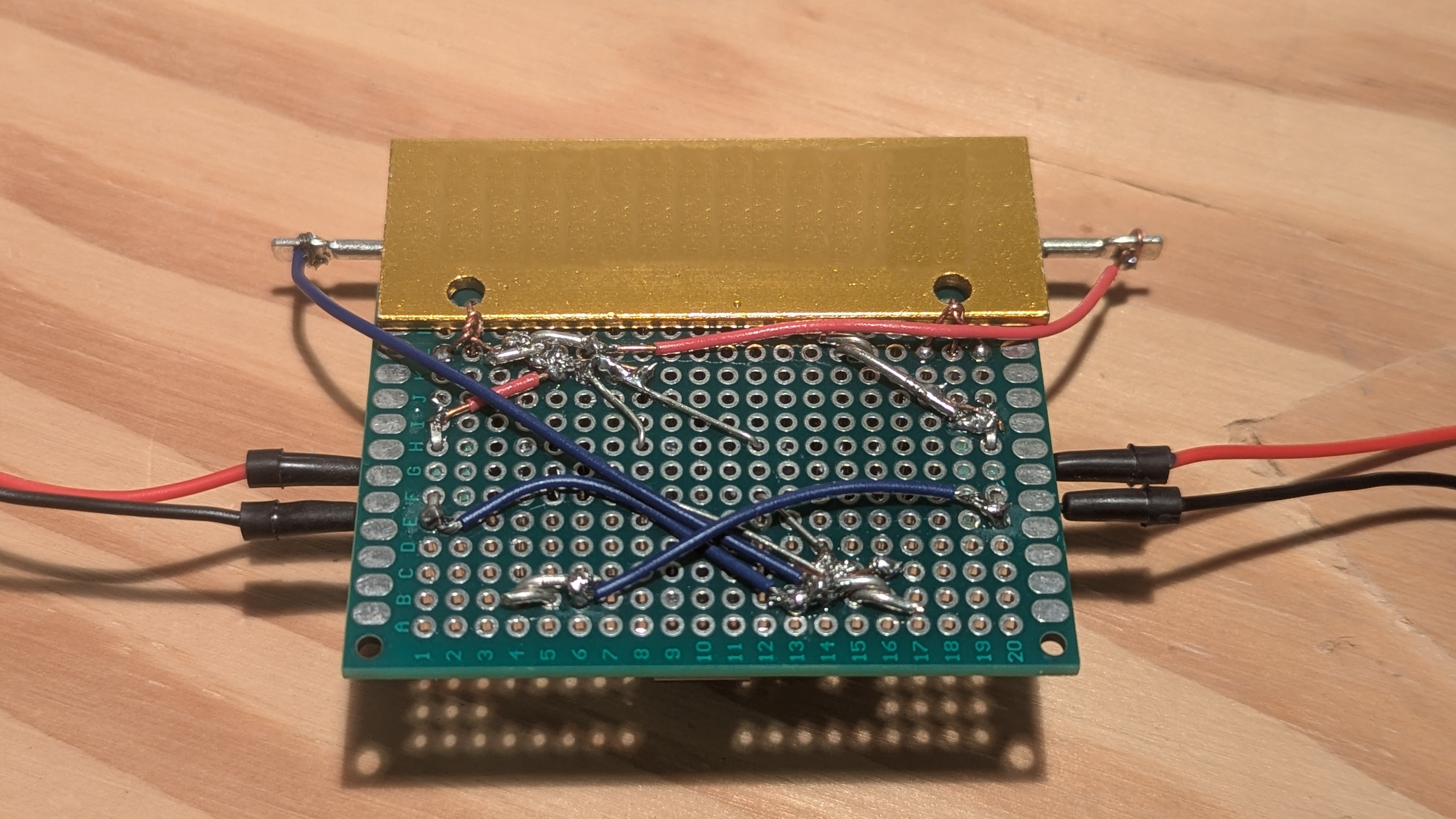 The back side showing the soldering and connections.